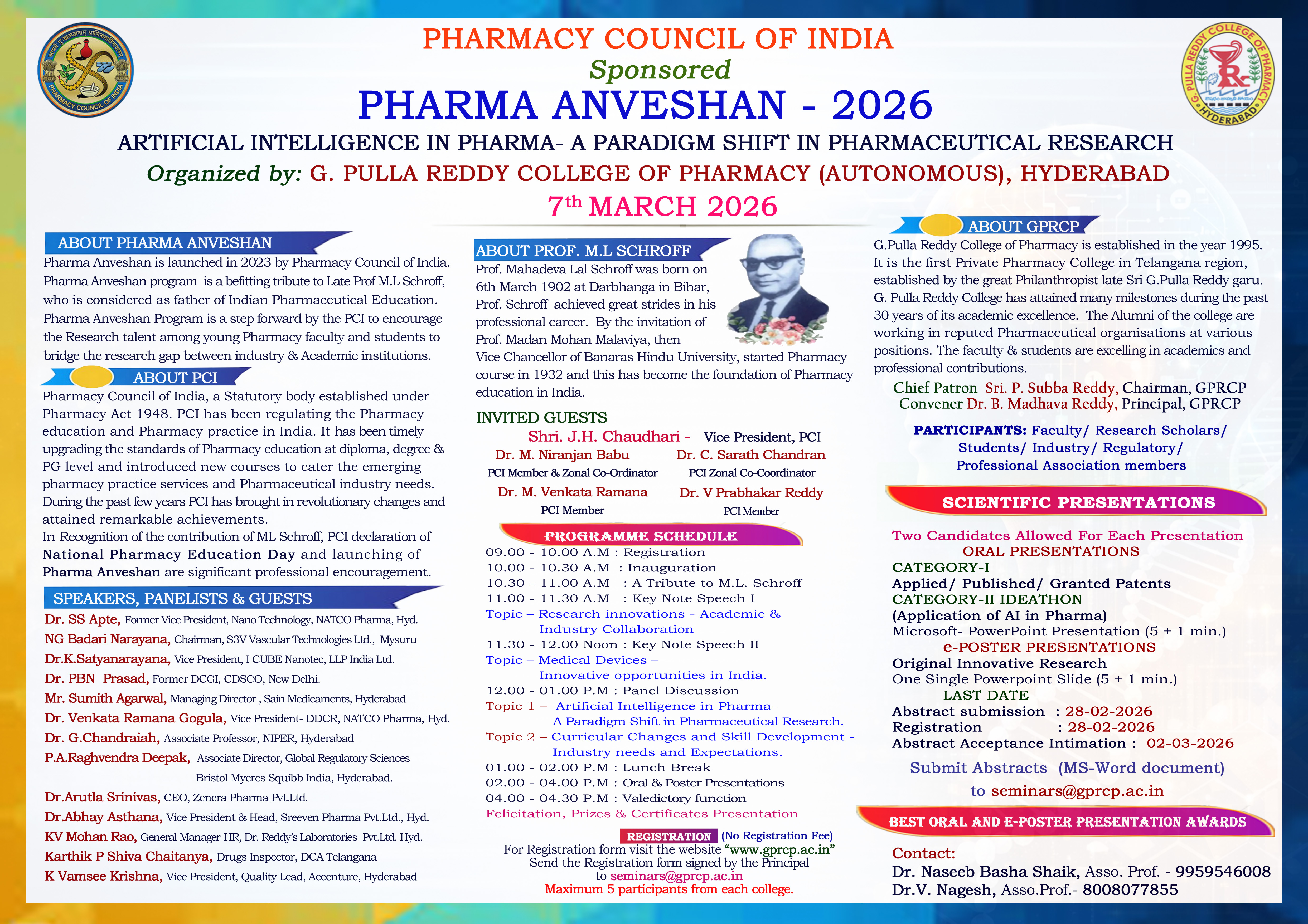 Pharma Anveshan - 2026 on 7th March 2026 sponsored by Pharmacy Council of India
